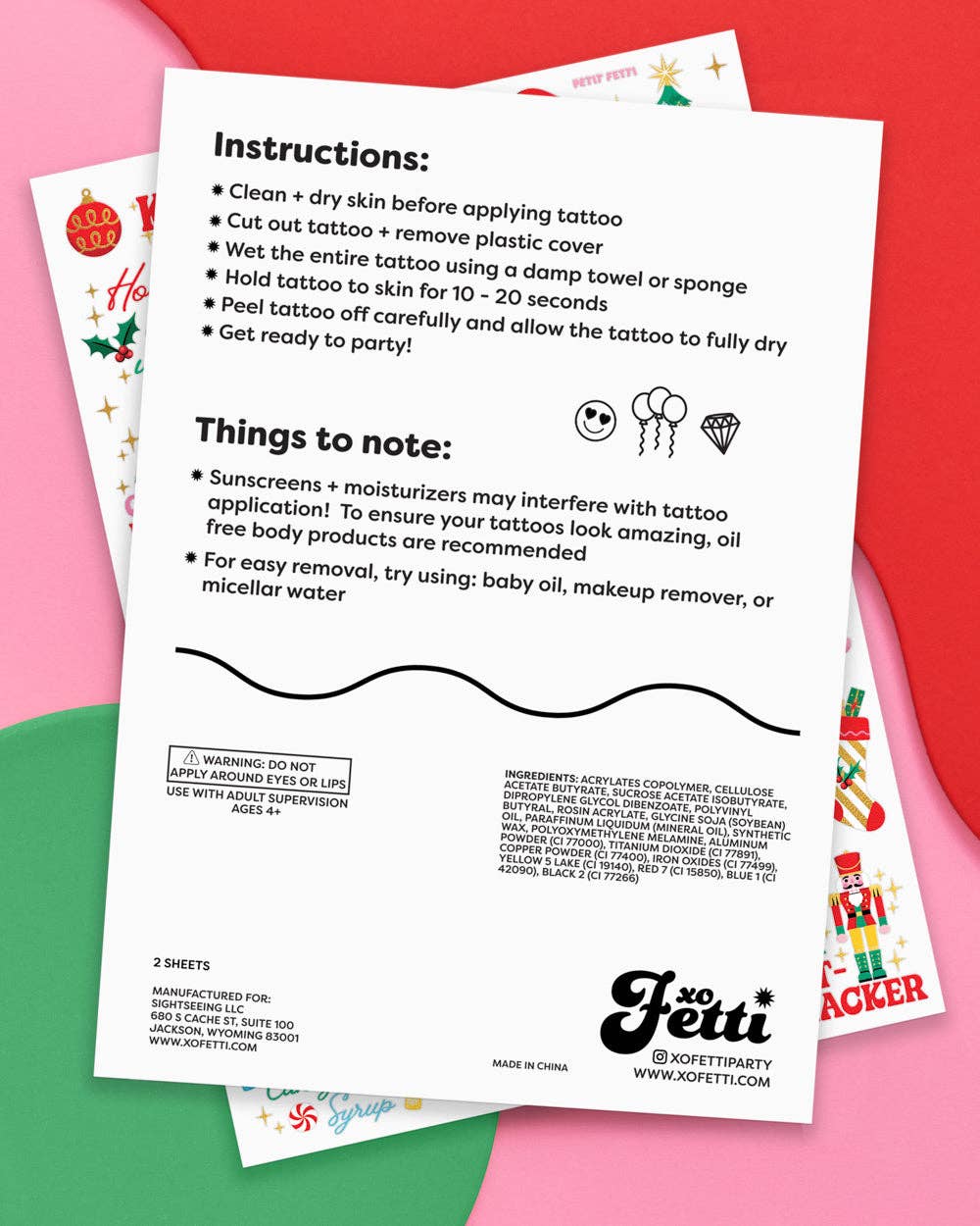 Son of a nutcracker. π Itβs movie magic, baby! Deck the halls with our festive Christmas flick tattoos. From heartwarming classics to holiday hijinks, you'll be jingling all the way like you just landed the starring role. Lights, camera, Christmas! 48 temporary tattoos 8.25β x 6β sheet Full color with hand drawn designs.