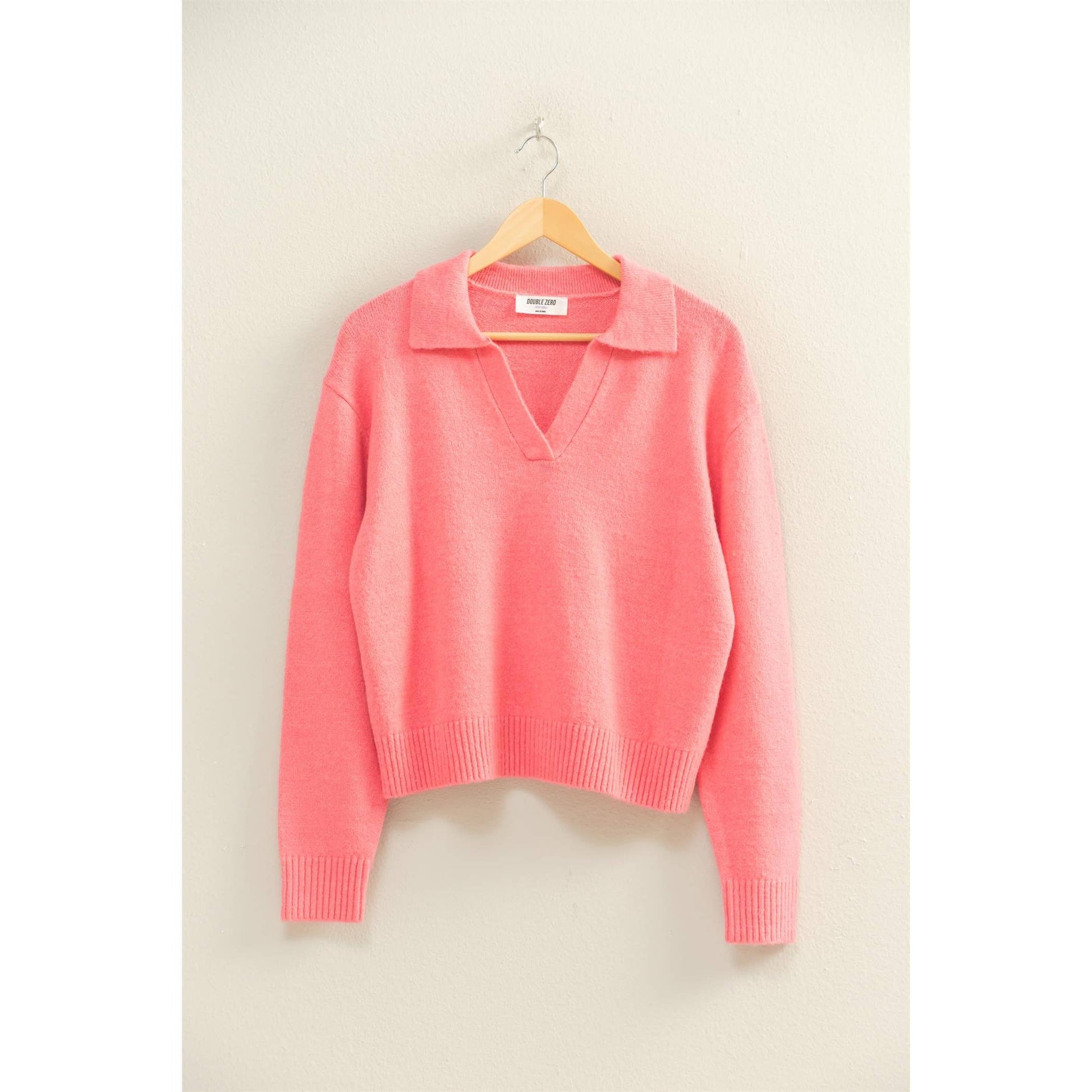 Collared V Neck Sweater: TAFFY PINK