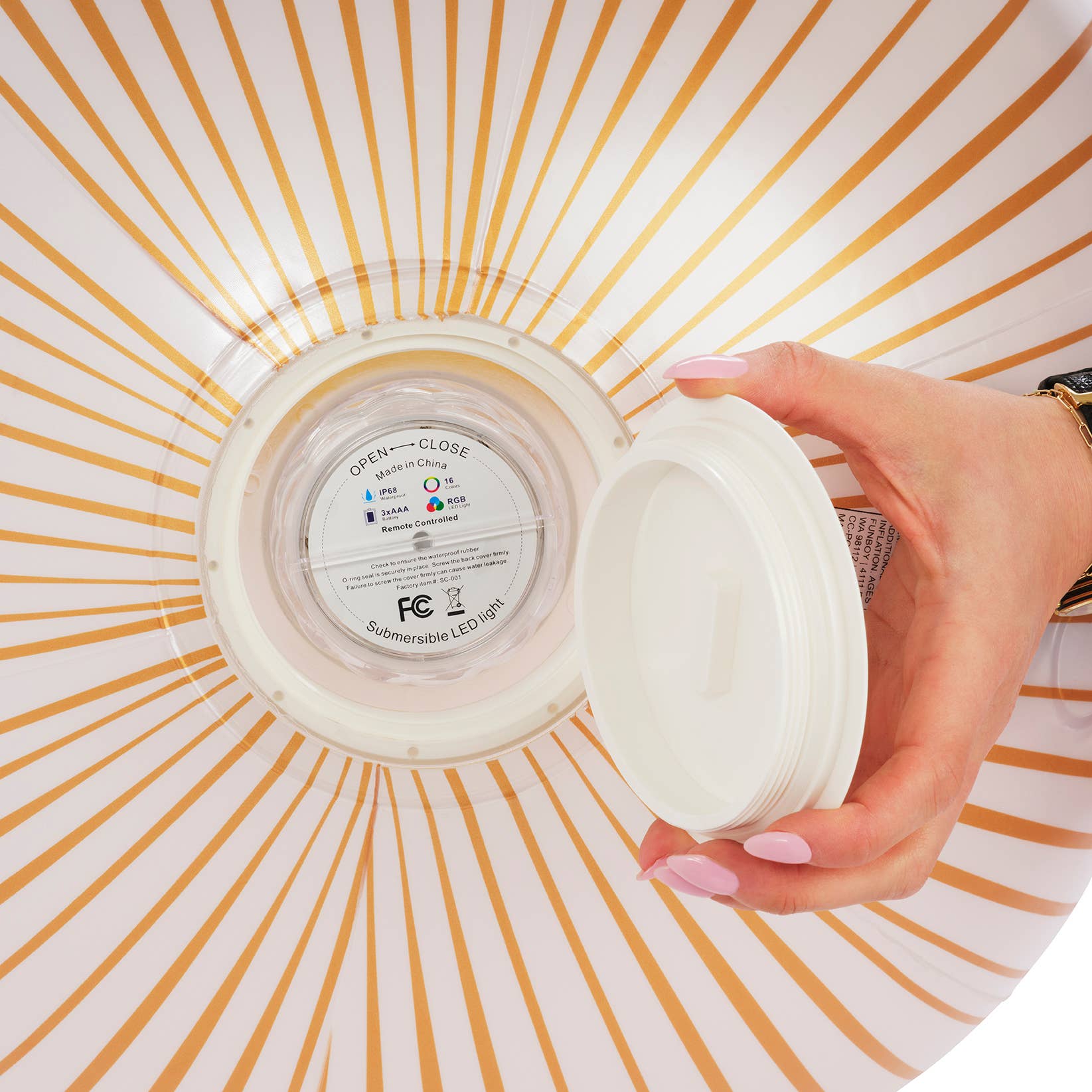 Inflatable LED Vintage Stripe Holiday Ornament 3 Pack - Large (24”), Medium (22”), and Small (16.5”). Perfect for indoor and outdoor use. Integrated battery operated LED light with over 16 colors, multiple light modes, timer and remote control. Weighted base ensures ornaments always stand upright and won't blow away in the wind. Versatile design can stand upright or can be hung. Inflatable and easy to store. Includes hand pump for easy inflation. Waterproof and weatherproof. Withstands freezing temperatures.